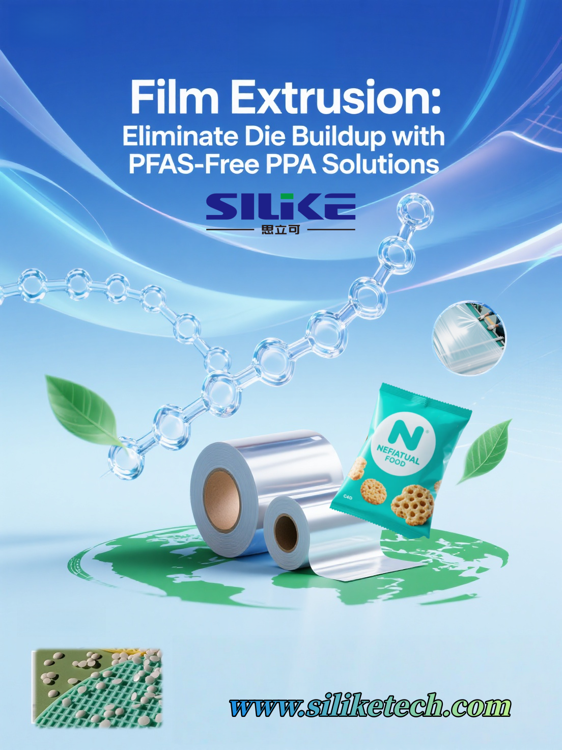 “SILIKE PFAS-Free Funksional Goşundylara” geçmek, partlanan film ekstruziýa liniýalaryna has gowy süýşmek ýerine ýetirijiligini, örtüginiň peselmegini, has köp önüm öndürilmegini we daşky gurşawyň berjaý edilmegini üpjün edýär - bularyň hemmesi öndürijilige zyýan bermezden.